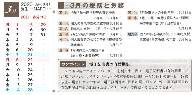 3月 税務カレンダー
